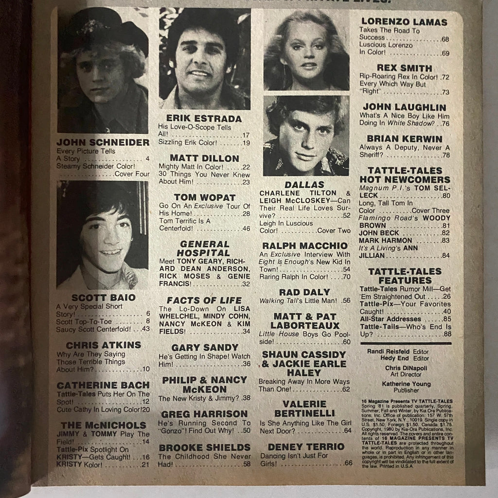 16 Magazine TV Tattle-Tales Spring 1981 Scott Baio, John Schneider No Label
