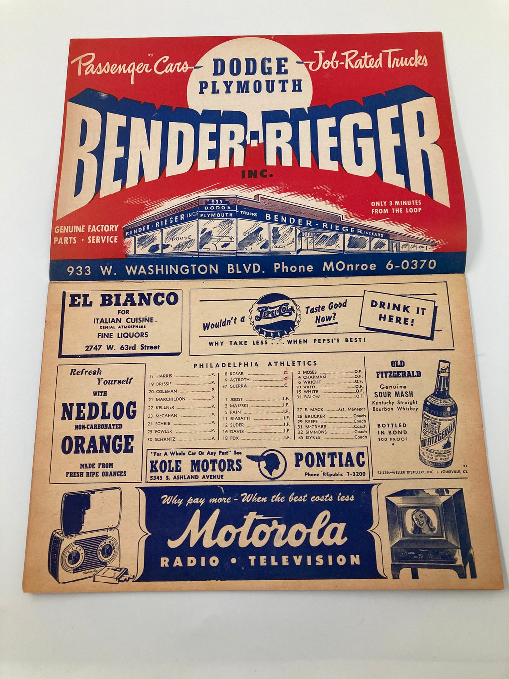 Step back in time with the 1949 Dodge Plymouth Bender-Rieger Inc. Score Cards Program. This unique collectible is a must-have for any automotive enthusiast or memorabilia collector. Full of vintage charm, this program captures a slice of history from the late 1940s, celebrating the iconic Dodge and Plymouth brands.
