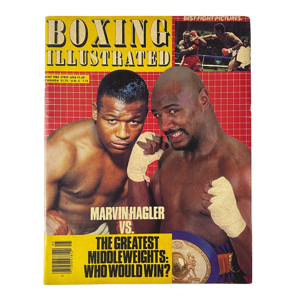 This May 1983 issue of Boxing Illustrated features Middleweight Champion Marvin Hagler on the cover, alongside the legendary Sugar Ray Robinson. The magazine delivers a mix of contemporary fight analysis, historical retrospectives, and amateur boxing coverage, making it a well-rounded snapshot of the sport during the early 1980s.