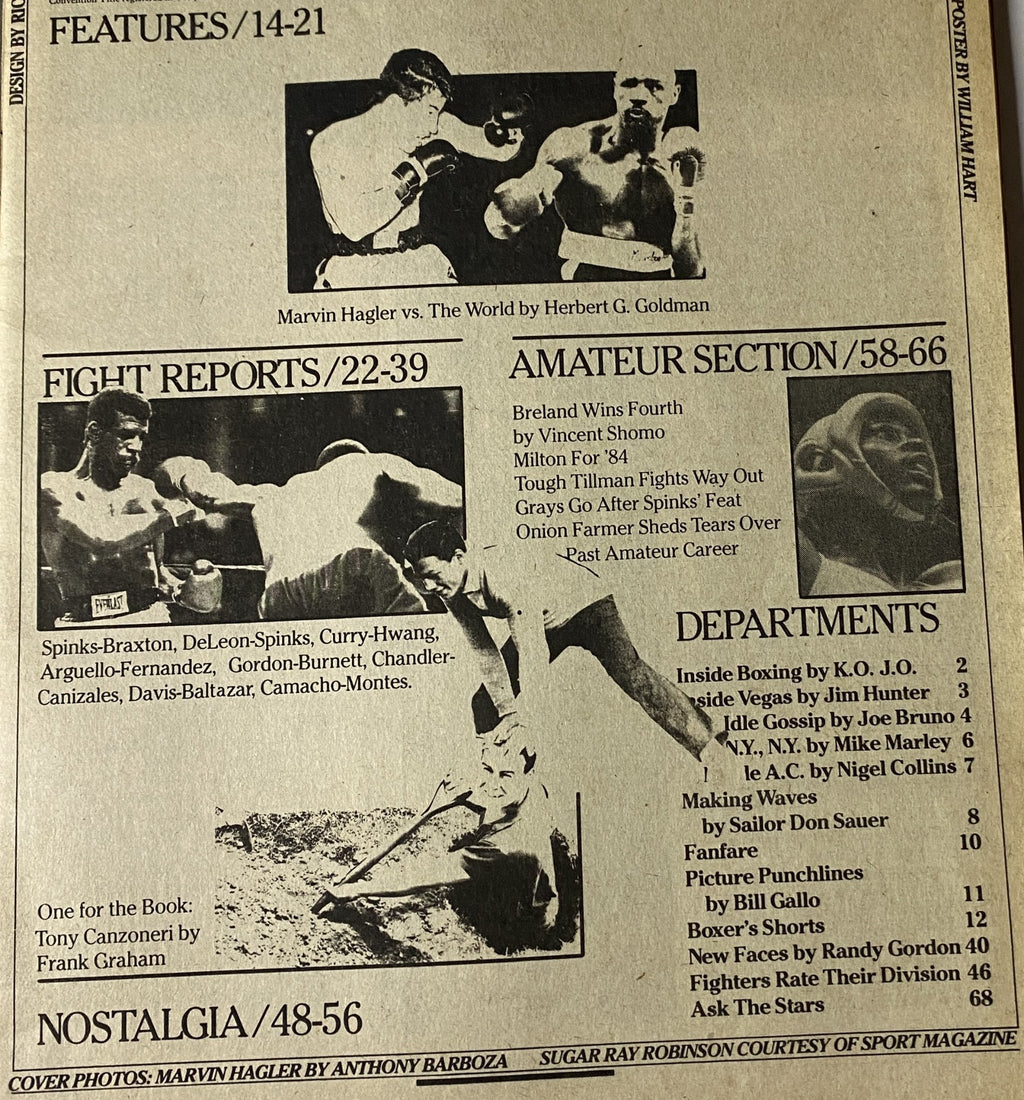 This issue is significant for its coverage of Marvin Hagler at the height of his reign, paired with a tribute to Sugar Ray Robinson, widely regarded as one of the greatest fighters of all time. It offers a blend of fight analysis, historical features, and amateur profiles, making it a valuable piece for boxing historians and collectors of vintage sports memorabilia.