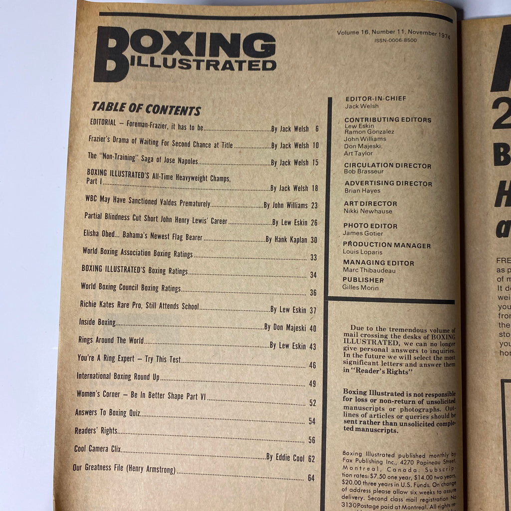 Boxing Illustrated Magazine – November 1974 – Joe Louis & John Henry Lewis Cover – No Label
