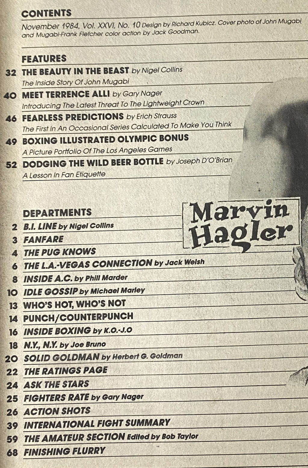 This November 1984 issue of Boxing Illustrated features hard-hitting middleweight contender John Mugabi on the cover. Known as “The Beast,” Mugabi was one of the most feared punchers of the era, and this issue dives deep into his career alongside other highlights from the boxing world of the mid-1980s.