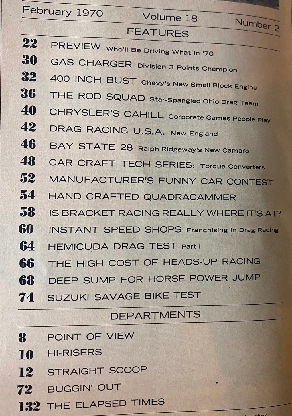 Car Craft Magazine – February 1970 – The Rod Squad & Chrysler’s Cahill | Vol. 18, No. 2 | Good Condition