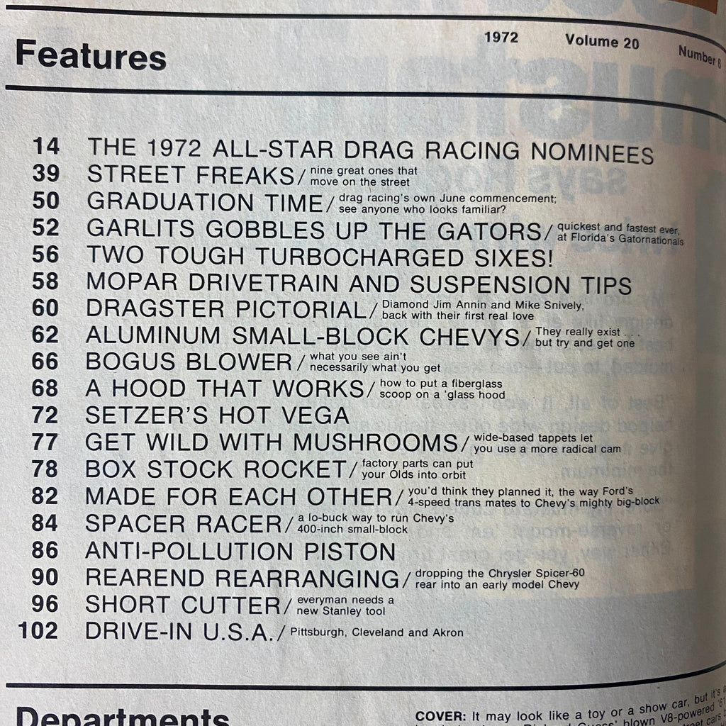 This issue is ideal for Chevy fans, engine builders, and drag racing enthusiasts looking for cutting-edge small-block insight and a strong dose of early 1970s performance culture.