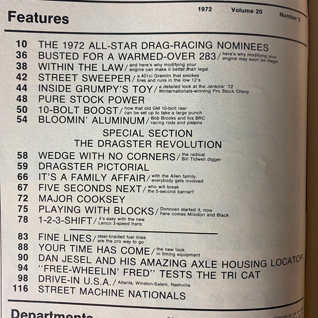 This is a collector-worthy issue rich in drag racing history, tech, and innovation—perfect for fans of early ’70s race engineering and performance culture.
