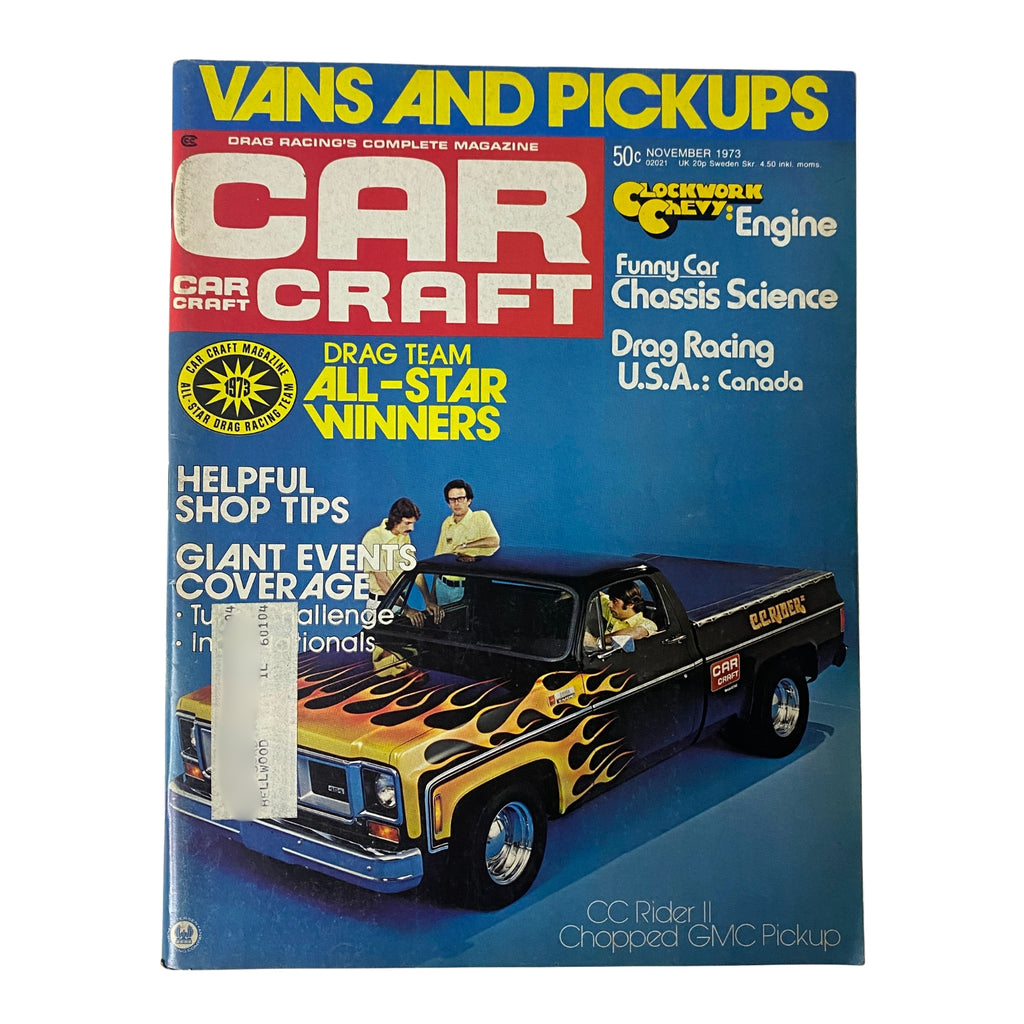 This November 1973 issue of Car Craft Magazine features CC Rider II, a standout chopped GMC pickup, alongside top drag racing coverage, tech articles, and event reports. With in-depth features from Indy to Canada, and the Project Pickup Finale, this issue is a must-have for enthusiasts of classic performance and custom builds.