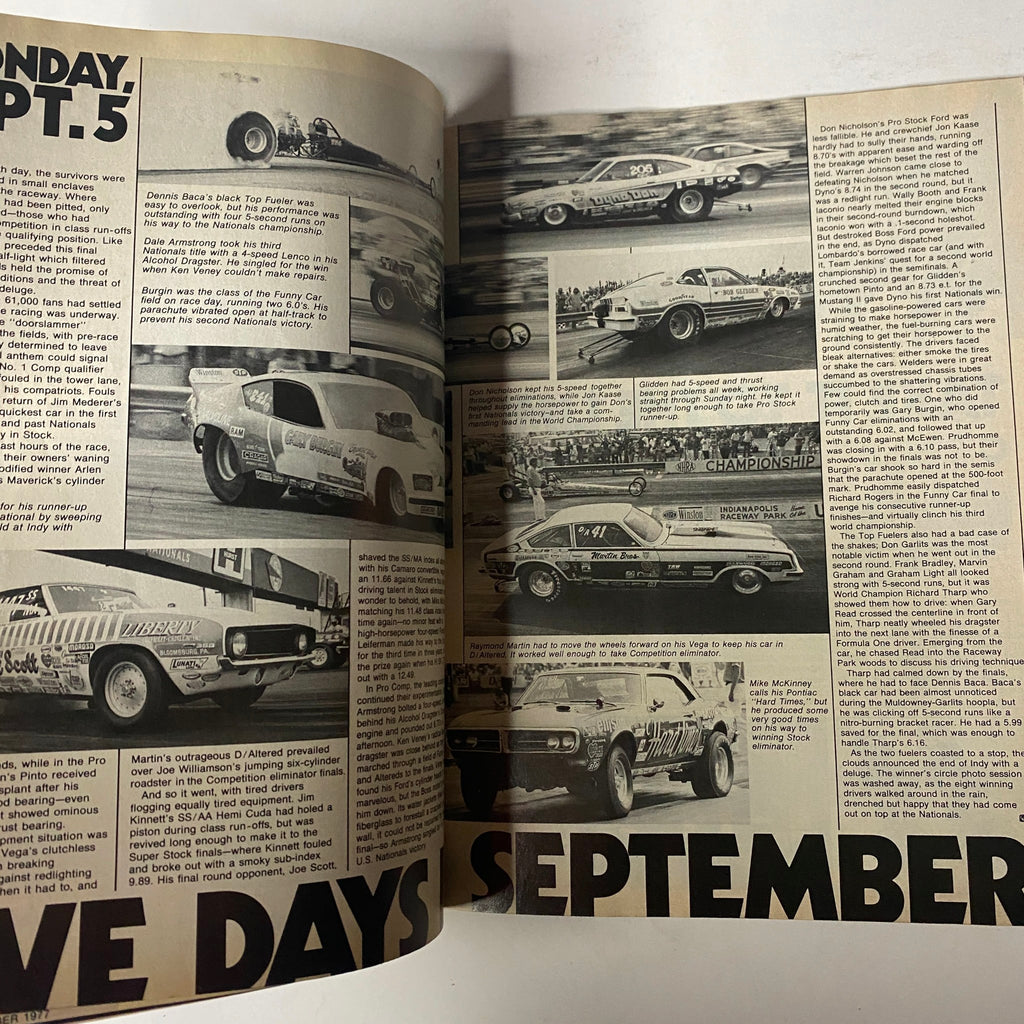 This November 1977 issue of Car Craft Magazine features in-depth coverage on bracket racing tech, performance builds, and an insightful look at the Two-Speed Torque Converter, along with drag car features and DIY articles.