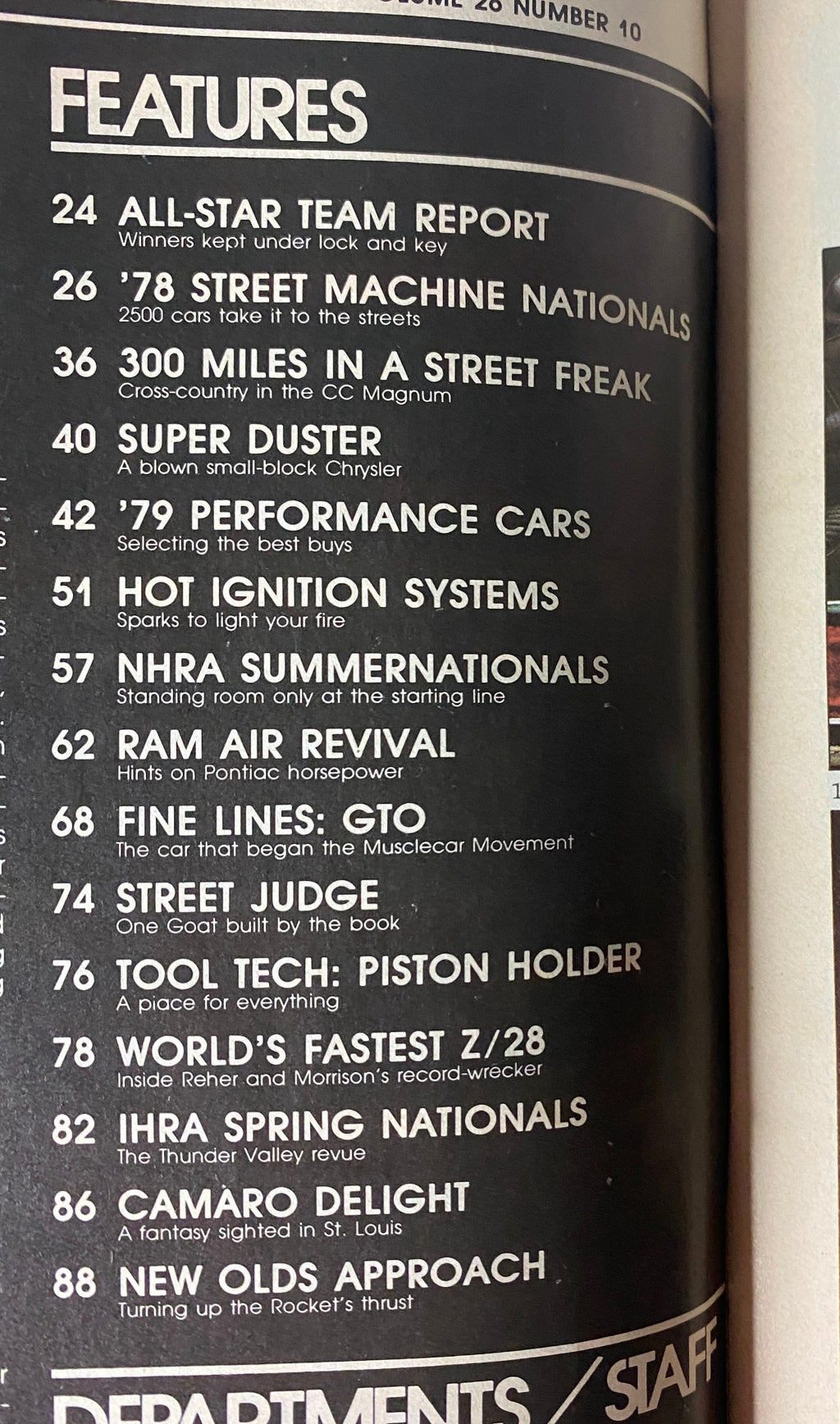 This October 1978 issue of Car Craft Magazine delivers a wild mix of high-powered builds and bold street machines, capturing the era’s obsession with speed, mods, and drag-strip dominance. A standout feature focuses on Fast & Freaky Street Machines—a celebration of outrageous performance cars built for the street.