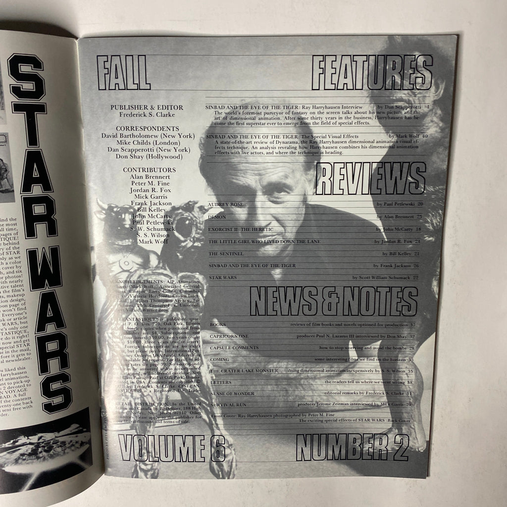An excellent issue for collectors and fans of Ray Harryhausen, this edition highlights his groundbreaking work on Sinbad and the Eye of the Tiger and showcases reviews of other major genre releases of the era.