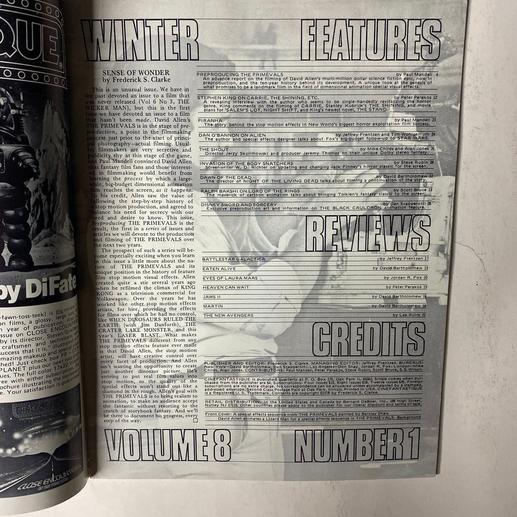 Cinefantastique Magazine – Winter 1978, Vol. 8 No. 1 – The Primevals – Near Mint (NM)