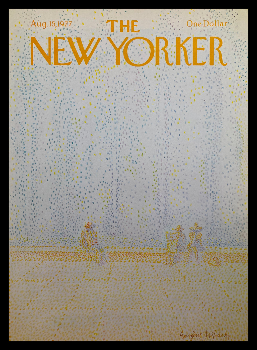 Discover a piece of art history with the exclusive cover of The New Yorker from August 15, 1977, titled "Dots" by renowned artist Eugene Mihaesco. This item is an excellent addition for collectors and fans of vintage magazine artwork. The cover itself showcases Mihaesco's unique style, featuring captivating polka dots that make this issue visually striking and memorable.