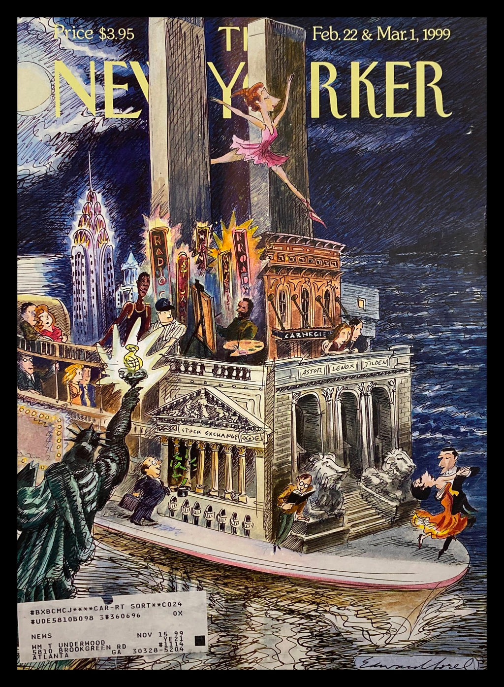 The New Yorker has long been recognized for its incredible contribution to the world of illustration and modern thought. This listing features the cover of the issue dated February 22, 1999, titled "City of Dreams" by the renowned artist Edward Sorel. Perfect for collectors, art enthusiasts, and fans of the iconic magazine, this cover captures the essence of Sorel's unique style and imagination.