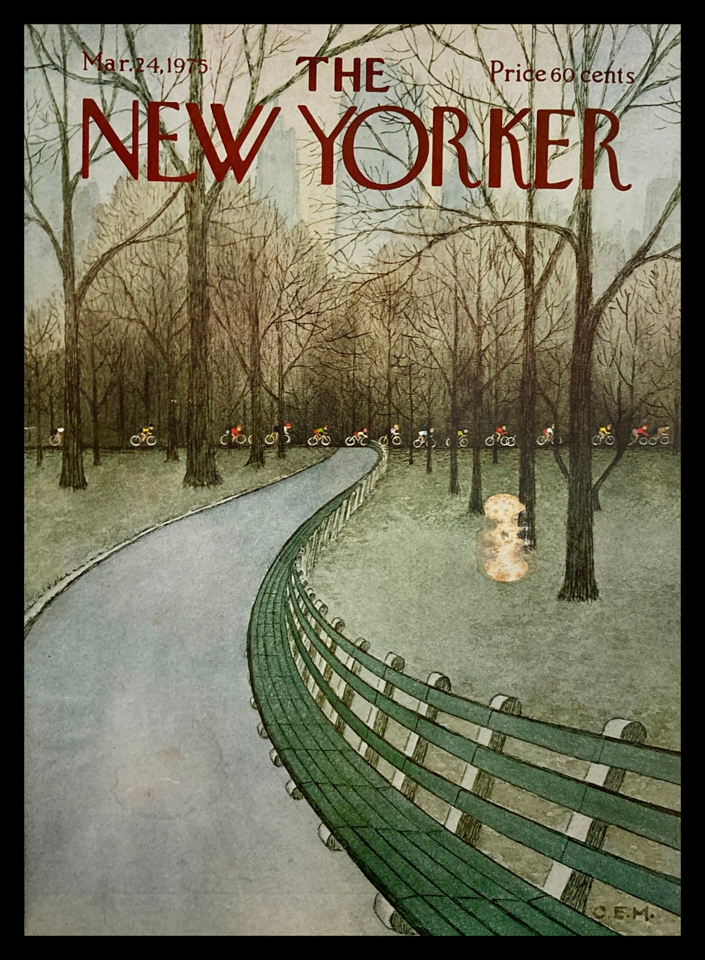 Step back in time with this stunning cover from The New Yorker, dated March 24, 1975. This unique piece showcases the artistic talents of Charles E. Martin, making it a treasure for collectors, cycling enthusiasts, or anyone who appreciates vintage art. The cover features a captivating portrayal of cycling that resonates with the spirit of the 1970s, capturing a moment in time when cycling culture was dynamically emerging.