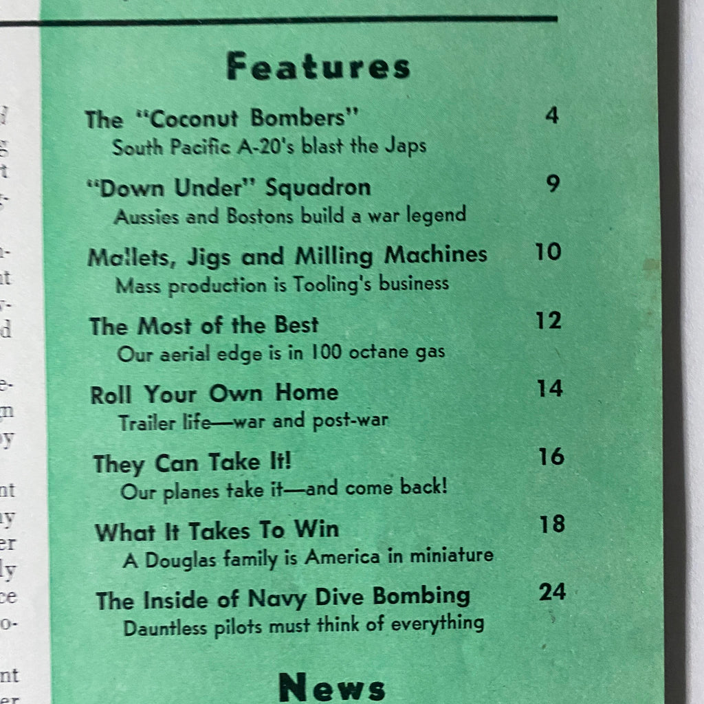 Discover a piece of aviation history with the Douglas Airview Magazine from May 1944, featuring the iconic "Coconut Bombers." This collectible vintage issue from Original Magazines captures the essence of World War II aviation, showcasing the bravery and technology behind the South Pacific A-20 bombers. Perfect for enthusiasts and collectors, this magazine presents a fascinating look at military aircraft during a pivotal time.
