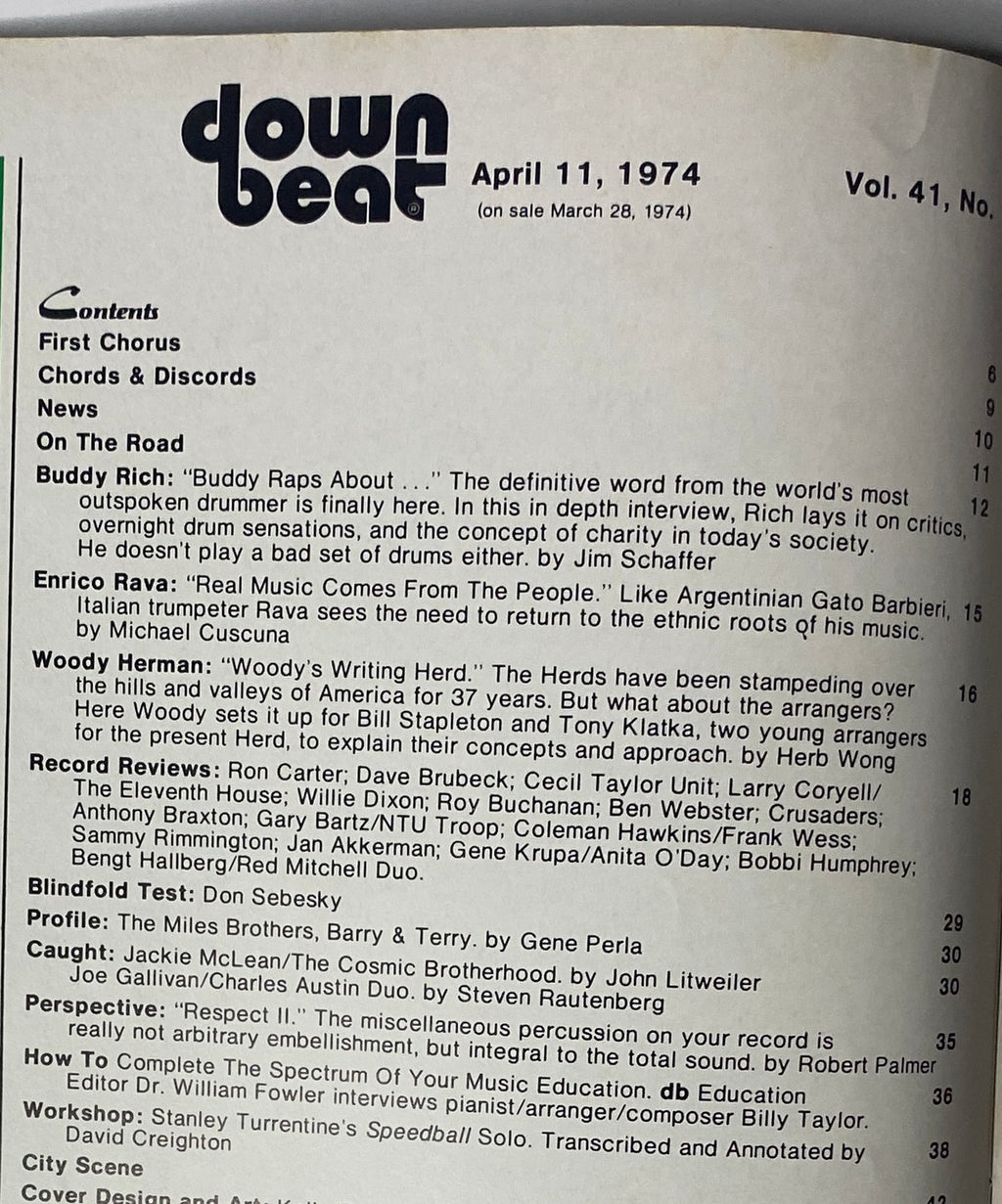 Down Beat Magazine April 11, 1974 Buddy Rich and Woody Herman Feature