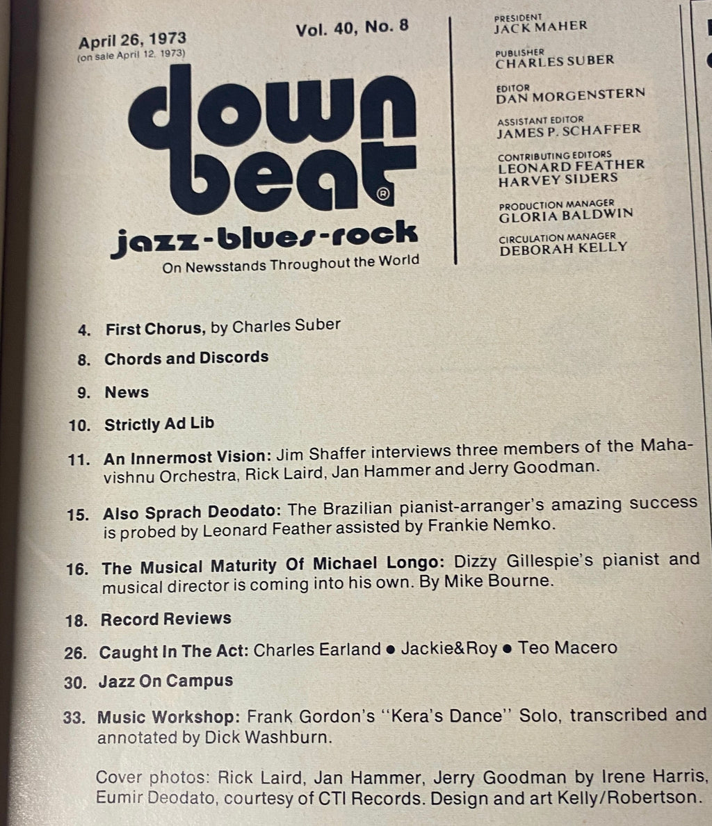 Down Beat Magazine April 26, 1973 Vol 40 No. 8 Rick Laird, Jerry Goodman