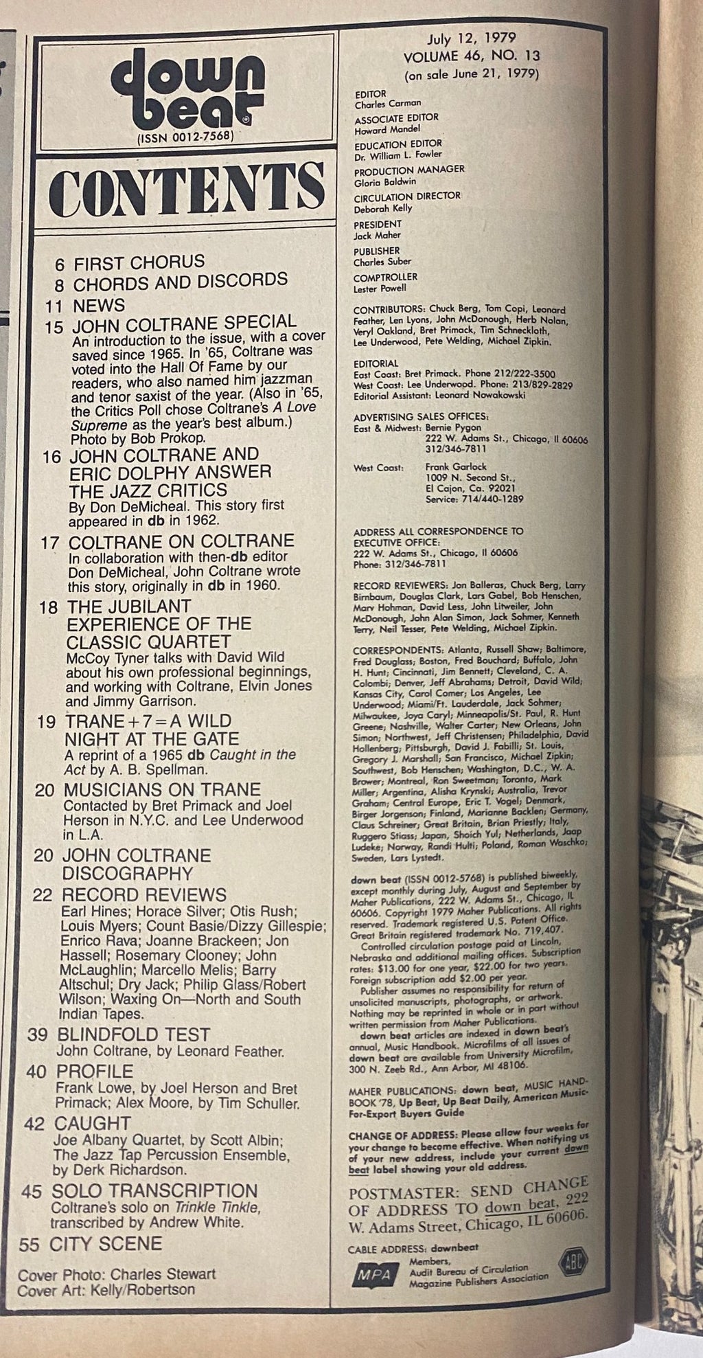 Down Beat Magazine July 12, 1979 – Vol. 46, No. 13 – John Coltrane Remembered