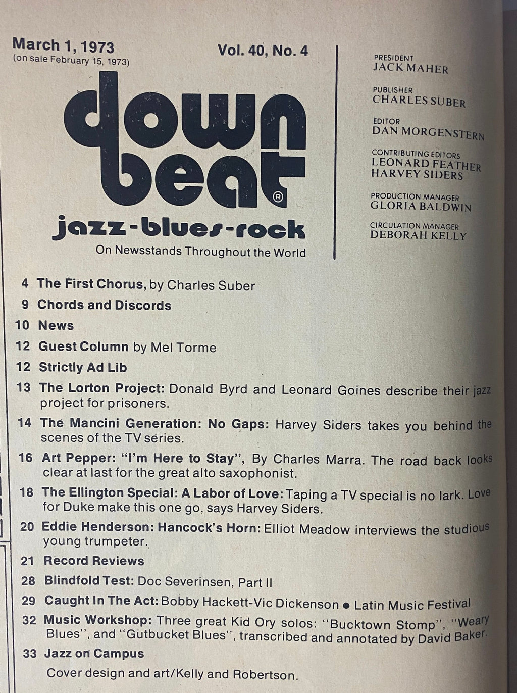 Down Beat Magazine March 1, 1973 – Vol. 40, No. 4 – The Mancini Generation