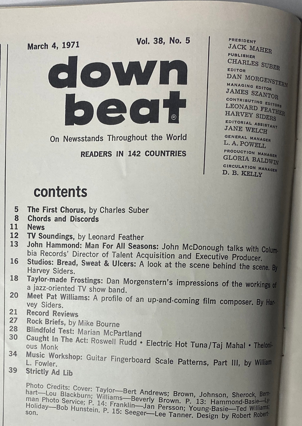 Down Beat Magazine March 4, 1971 Vol. 38 No. 5 – Billy Taylor, John Hammond Feature