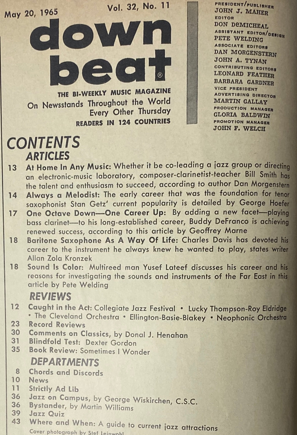 Down Beat Magazine May 20, 1965 Vol. 32 No. 11 – Yusef Lateef, Buddy DeFranco Feature