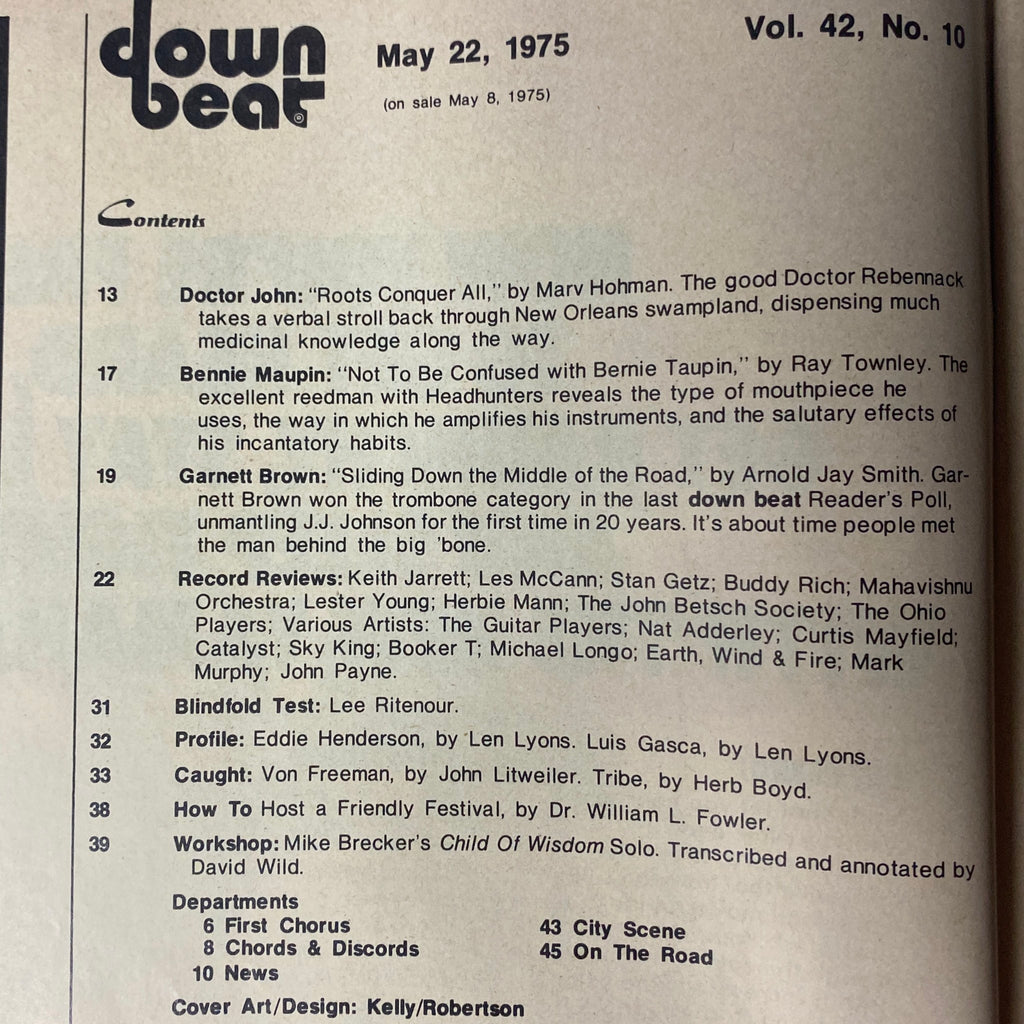 Down Beat Magazine May 22, 1975 Vol 42 No. 10 Dr. John and Bennie Maupin Feature