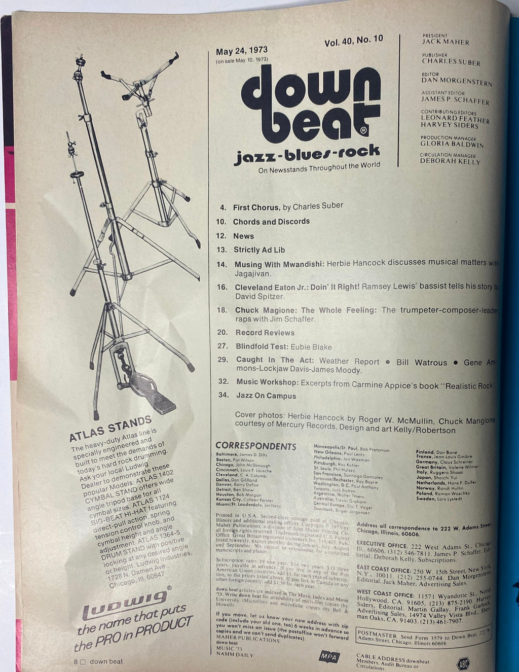 Down Beat Magazine – May 24, 1973 (Vol. 40 No. 10) – Chuck Mangione, Herbie Hancock Cover