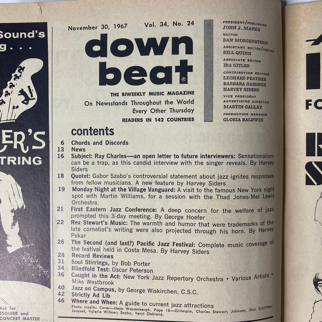 Down Beat Magazine – November 30, 1967 (Vol. 34 No. 24) – The Many Moods of Ray Charles Cover