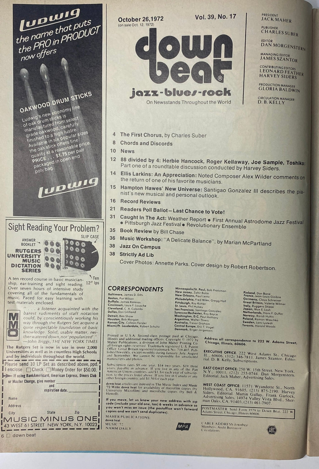 Down Beat Magazine – October 26, 1972 (Vol. 39 No. 17) – Annette Parks Cover