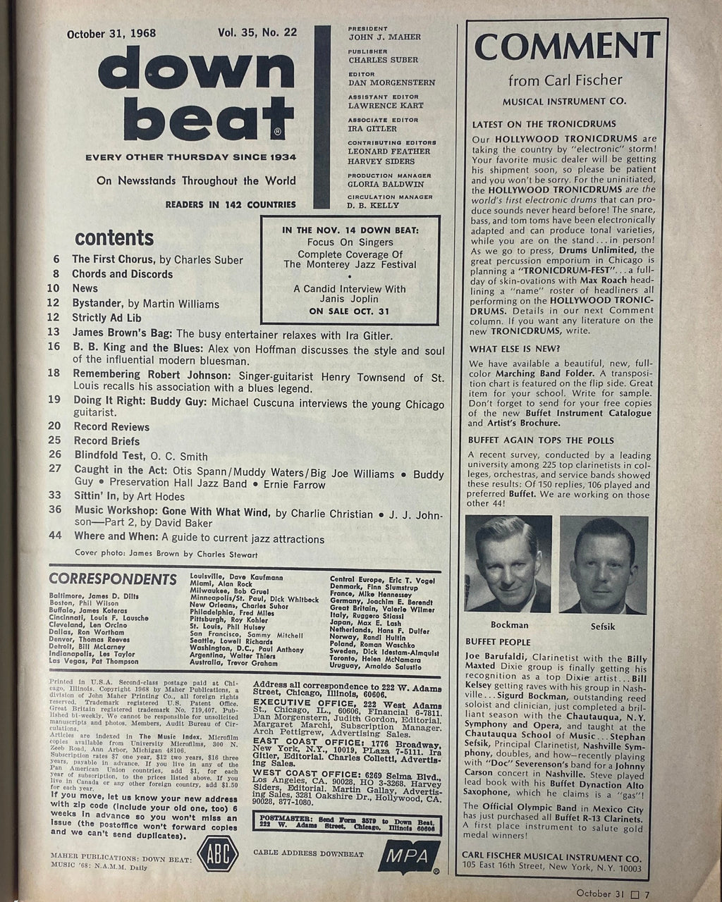 Down Beat Magazine – October 31, 1968 (Vol. 35, No. 22) – James Brown, B.B. King Feature