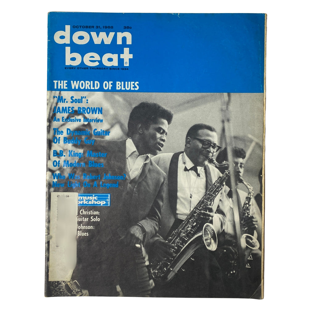 This vintage issue of Down Beat Magazine from October 31, 1968 (Vol. 35, No. 22) features cover star James Brown and in-depth articles on the Godfather of Soul, B.B. King, and other major figures of the era. A true collectible for fans of jazz, blues, and soul, this issue provides unique insights into the music world of the late 1960s.