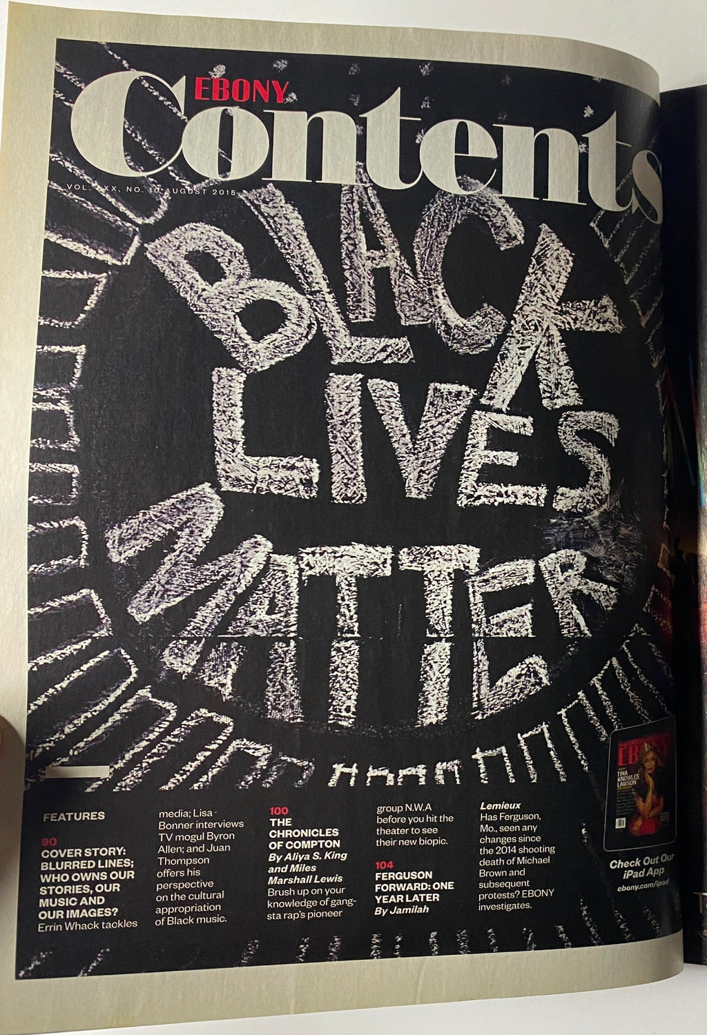 Ebony Magazine – August 2015 – Vol. XXX, No. 10 – Black Lives Matter Cover