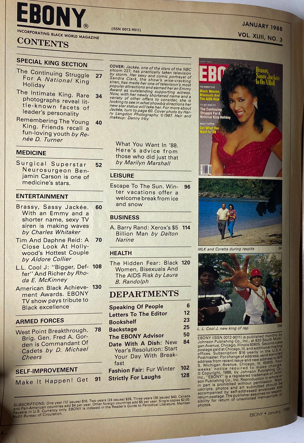 Ebony Magazine – January 1988 – Jackée Harry Cover – Good Condition