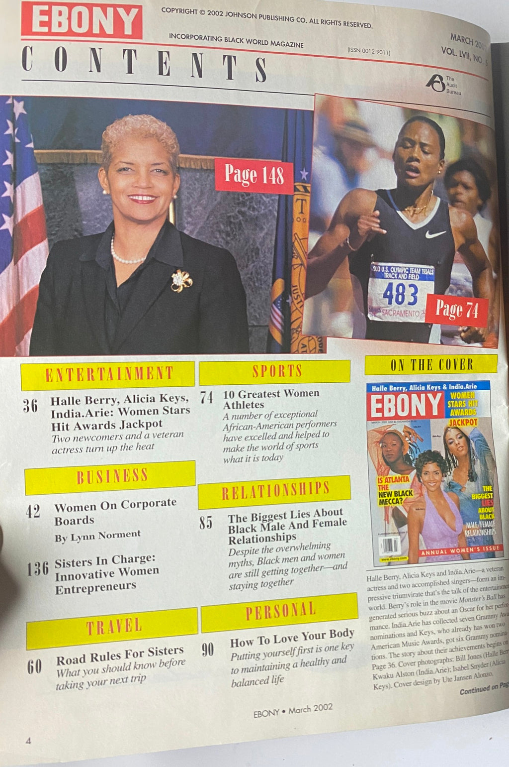 Ebony Magazine – March 2002 – India.Arie, Alicia Keys & Halle Berry Cover – Good Condition