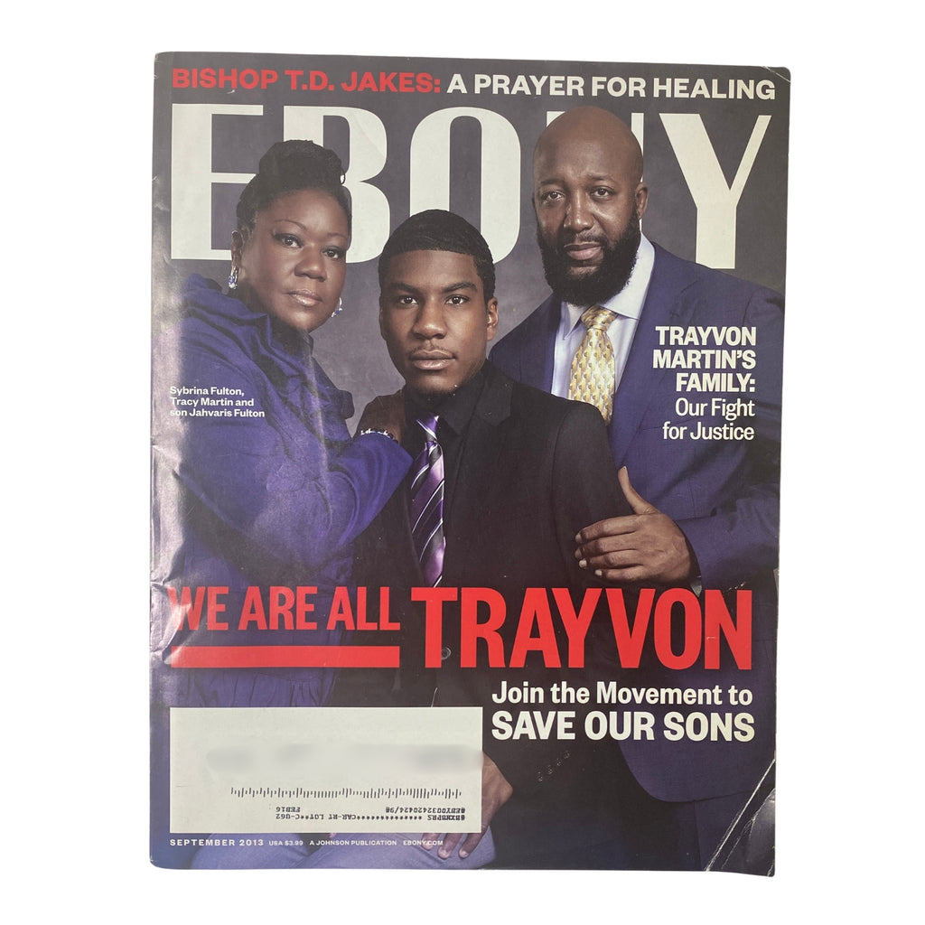 This powerful September 2013 issue of Ebony Magazine features Sybrina Fulton, Tracy Martin, and Jahvaris Fulton—the family of Trayvon Martin—on the cover, as part of a deeply moving and nationally resonant special edition titled “Saving Our Sons.” The issue explores the impact of Trayvon Martin’s death, the controversial George Zimmerman trial, and the lasting effects on the Black community. It is a landmark publication that addresses systemic injustice, community healing, and the urgent need to protect Black boys in America.