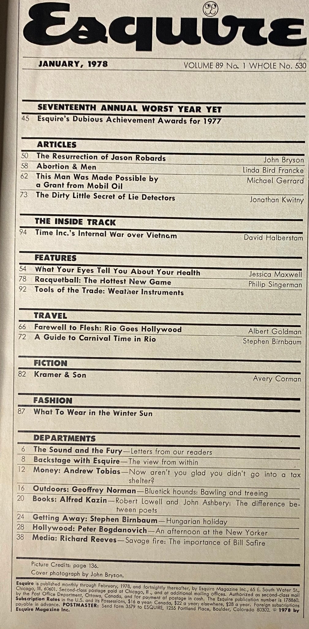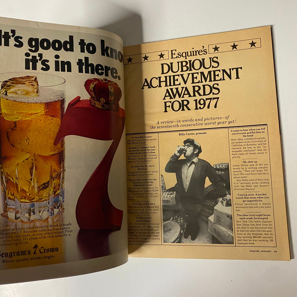 Discover a piece of history with this vintage magazine, Esquire Magazine from January 1978, featuring an exclusive cover story, "The Resurrection of Jason Robards." This collectible issue immerses readers in the vibrant culture of the late 70s, showcasing the glamour of Hollywood, emerging fashion trends, and thought-provoking societal discussions.