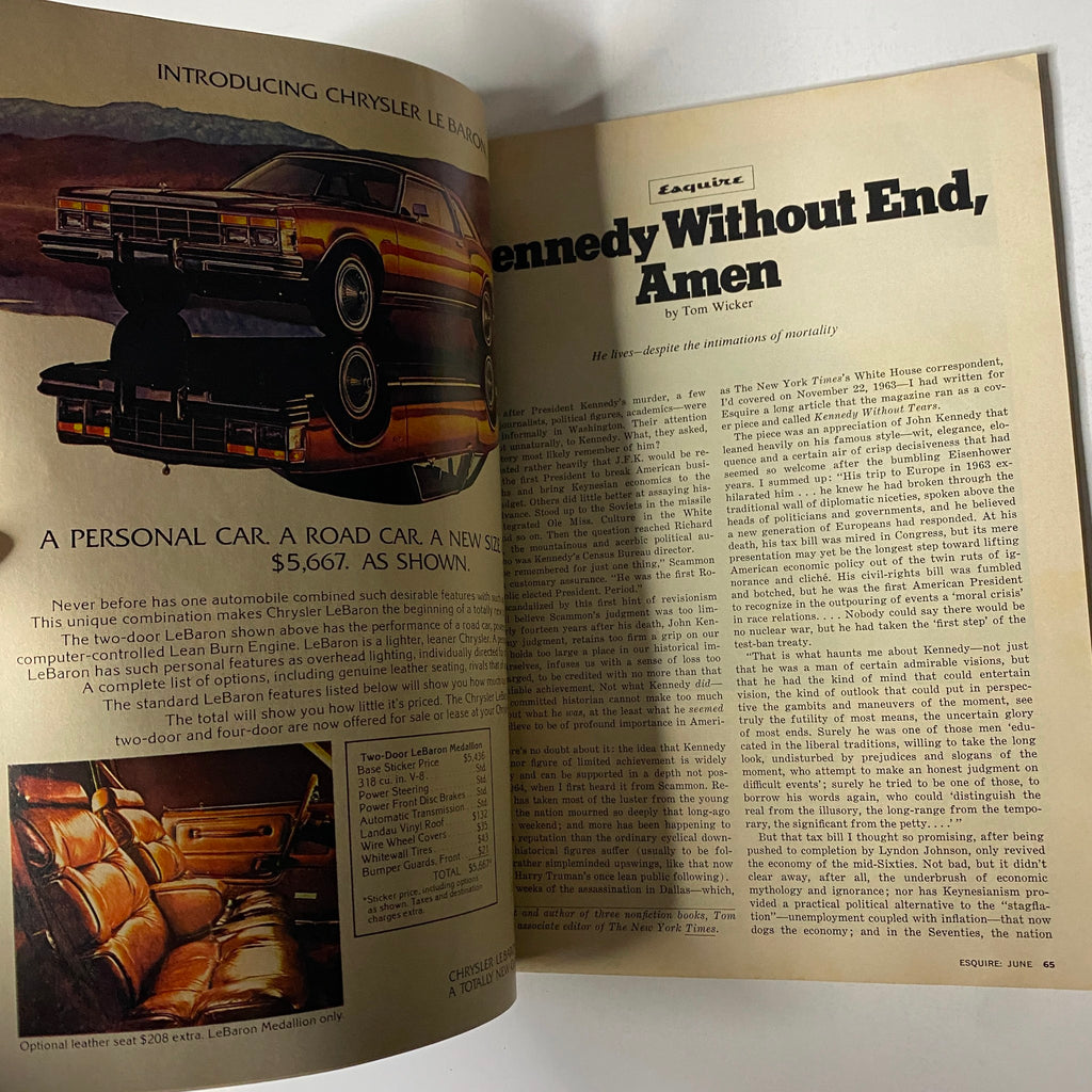Discover a piece of history with this vintage issue of Esquire Magazine, dating back to June 1977, featuring an iconic cover of John F. Kennedy. This collectible magazine not only highlights the Kennedy legacy through thought-provoking articles, but it also offers a captivating snapshot of the political and cultural climate of the late 1970s.