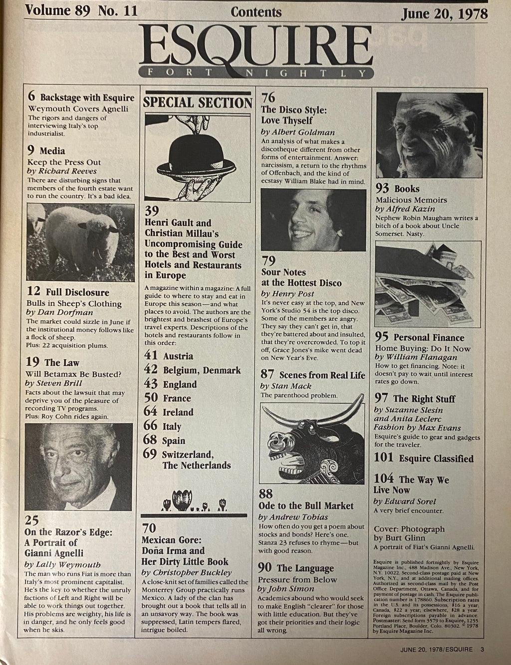 Discover a rare gem in vintage magazines with the June 20, 1978 issue of Esquire Magazine, featuring an exclusive profile of Fiat's dynamic chairman, Gianni Agnelli. This captivating magazine offers readers a unique glimpse into the world of high finance and culture during a transformative era in history.