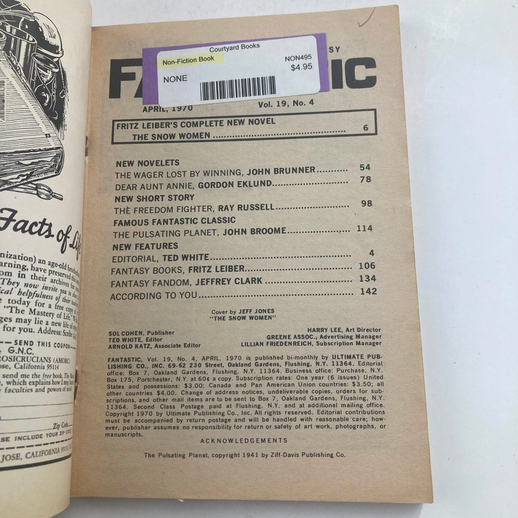 If you are a collector or simply a fan of vintage literature, the Fantastic Magazine April 1970 Vol 19 No. 4 titled "The Wager Lost by Winning" is a must-have addition to your collection. This magazine stands out not only for its captivating stories but also as a stunning piece of nostalgia from a pivotal time in literary history. With no label present, it retains a charmingly authentic character that appeals to purists and new collectors alike.