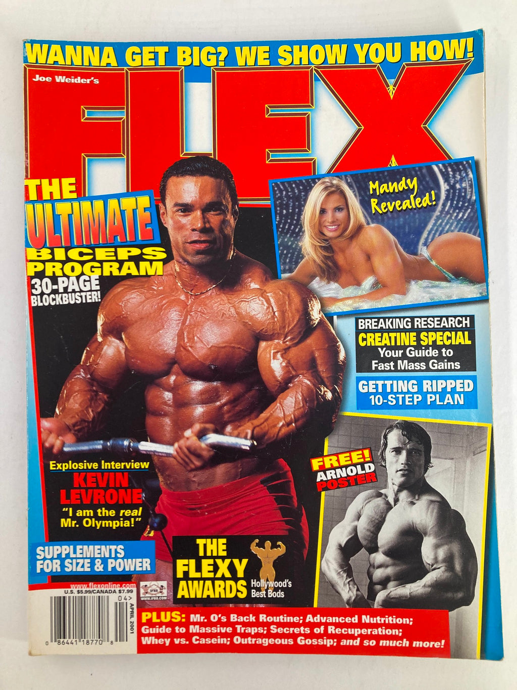 Flex Magazine April 2001 Arnold Schwarzenegger w Poster No Label