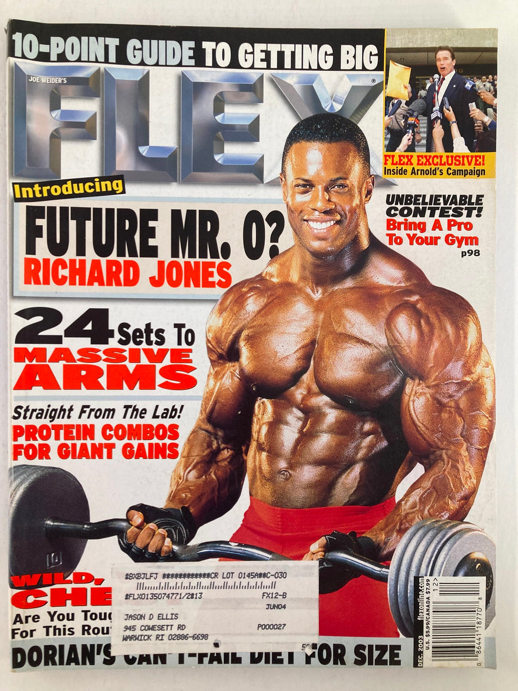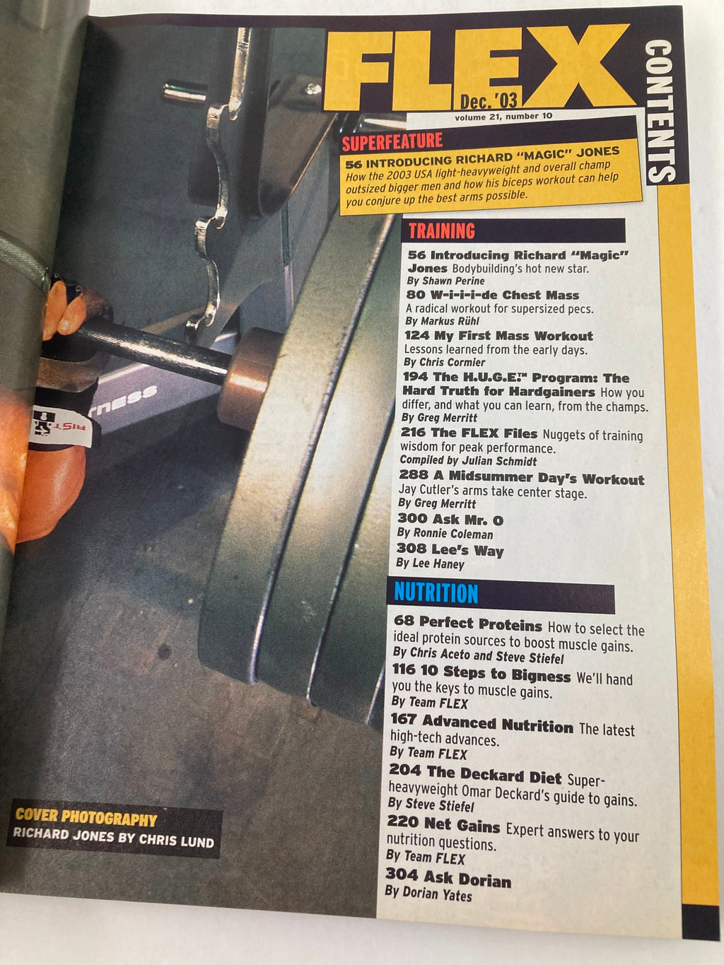Discover the captivating world of vintage bodybuilding culture with this collector's treasure: the Flex Magazine from December 2003, featuring Richard Jones, a promising contender hailed as "The Future Mr. Olympia?" Uncover insights and analyses from a time when fitness and aesthetics were at the forefront of pop culture.