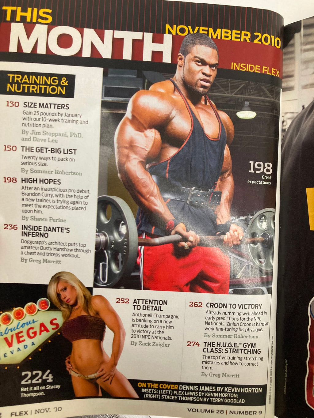 Discover a piece of bodybuilding history with this vintage magazine collection: Flex Magazine November 2010, Volume 28, Issue 9. Featuring renowned athletes Dennis James and Flex Lewis, this issue provides insights into the world of professional bodybuilding and fitness. The cover highlights their impressive physiques and achievements, making it a must-have for enthusiasts and collectors alike.