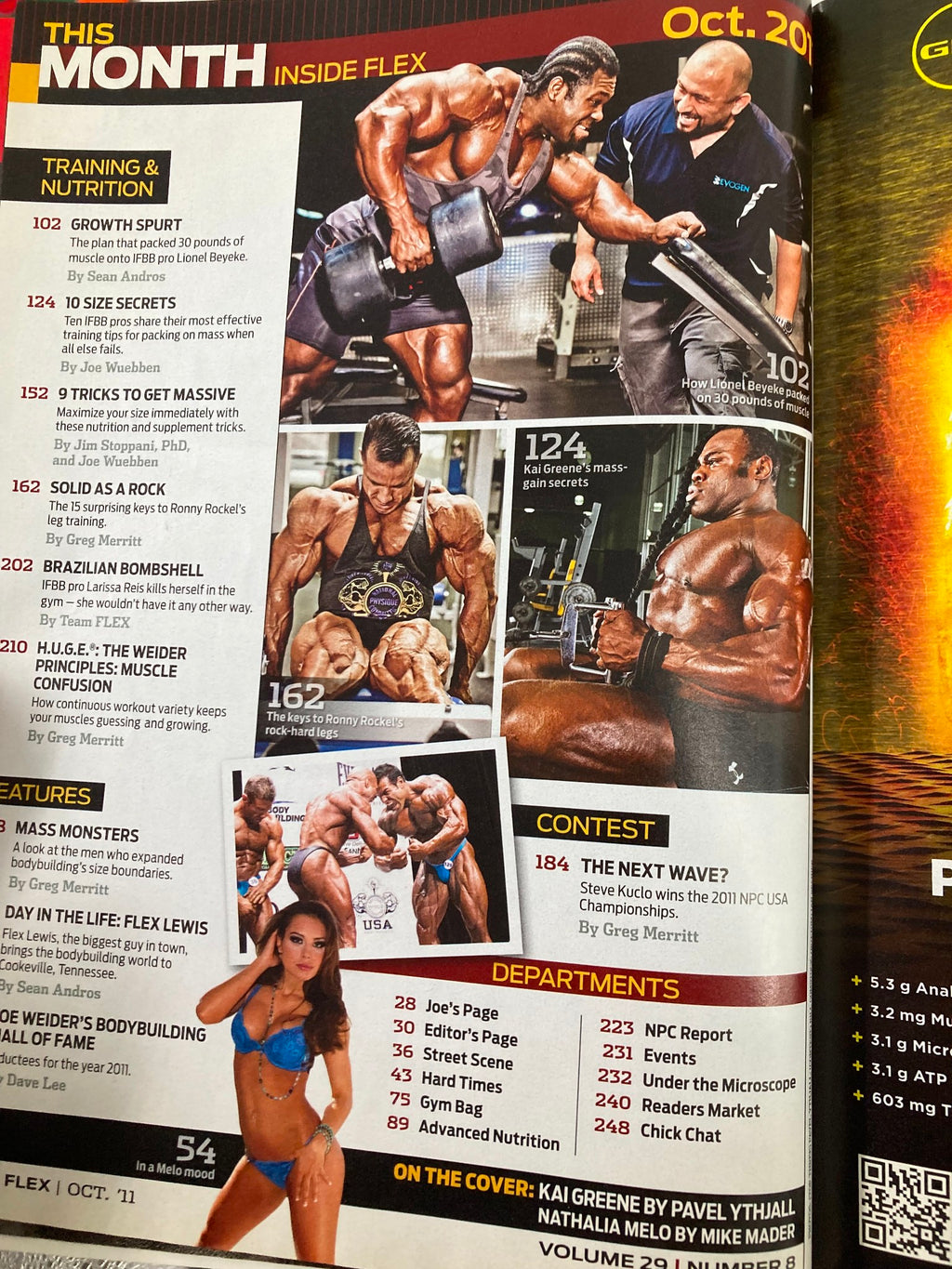 Explore the World of Vintage Magazines with Flex Magazine – October 2011, Vol. 29 #8 Featuring Kai Greene and Nathalia Melo
