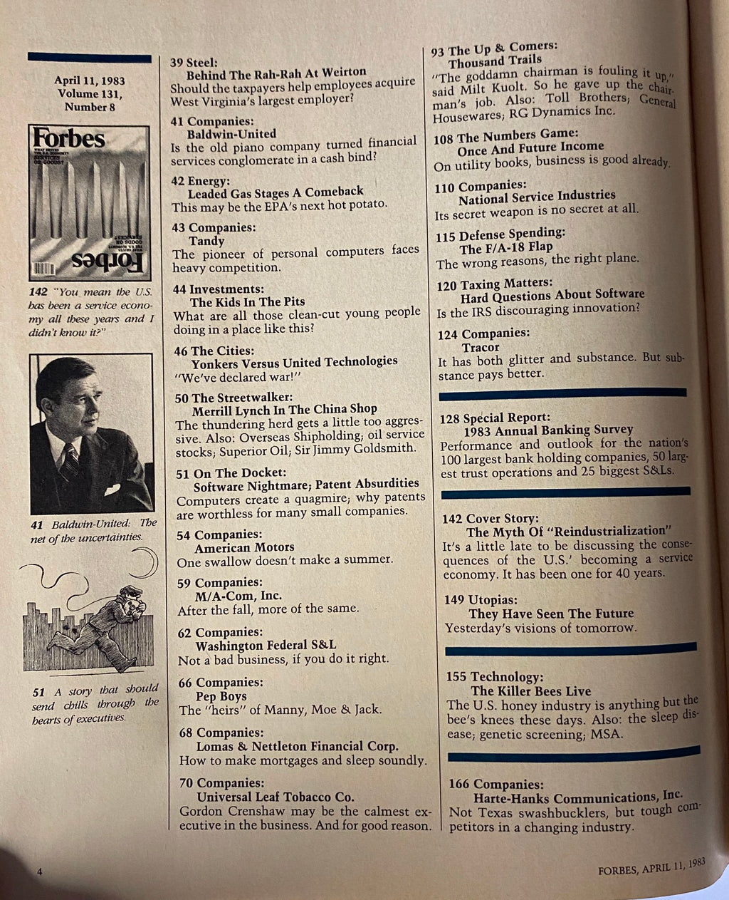 This collectible issue of Forbes Magazine, dated April 11, 1983, is a significant piece of economic history, particularly for those interested in vintage magazines that capture pivotal moments. This specific edition, Volume 131, Number 8, features the compelling cover story, "The Myth of 'Reindustrialization'," which critiques the revival of America's industrial power amidst a shifting economic landscape.