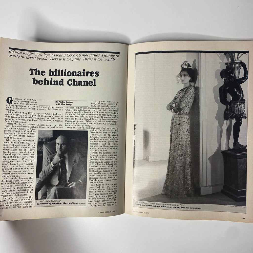 Explore the timeless allure of the Forbes Magazine issue dated April 3, 1989, featuring an iconic cover story on Alain Wertheimer, the influential figure behind the legendary Chanel brand. This vintage magazine offers an insightful glimpse into the world of high fashion and business strategy, showcasing how Chanel transformed into a global luxury powerhouse under the guidance of Pierre Wertheimer.