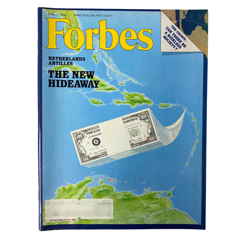 This classic issue of Forbes Magazine, dated April 7, 1986, offers a fascinating insight into the economic climate of the mid-1980s, focusing on the intriguing cover story titled "The New Hideaway." Emphasizing the Netherlands Antilles as a burgeoning financial haven, this vintage magazine explores significant corporate strategies, investment trends, and global market influences that shaped the era.