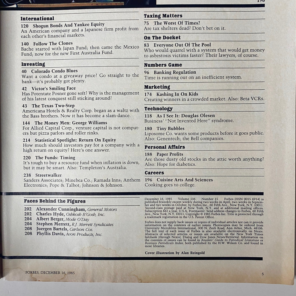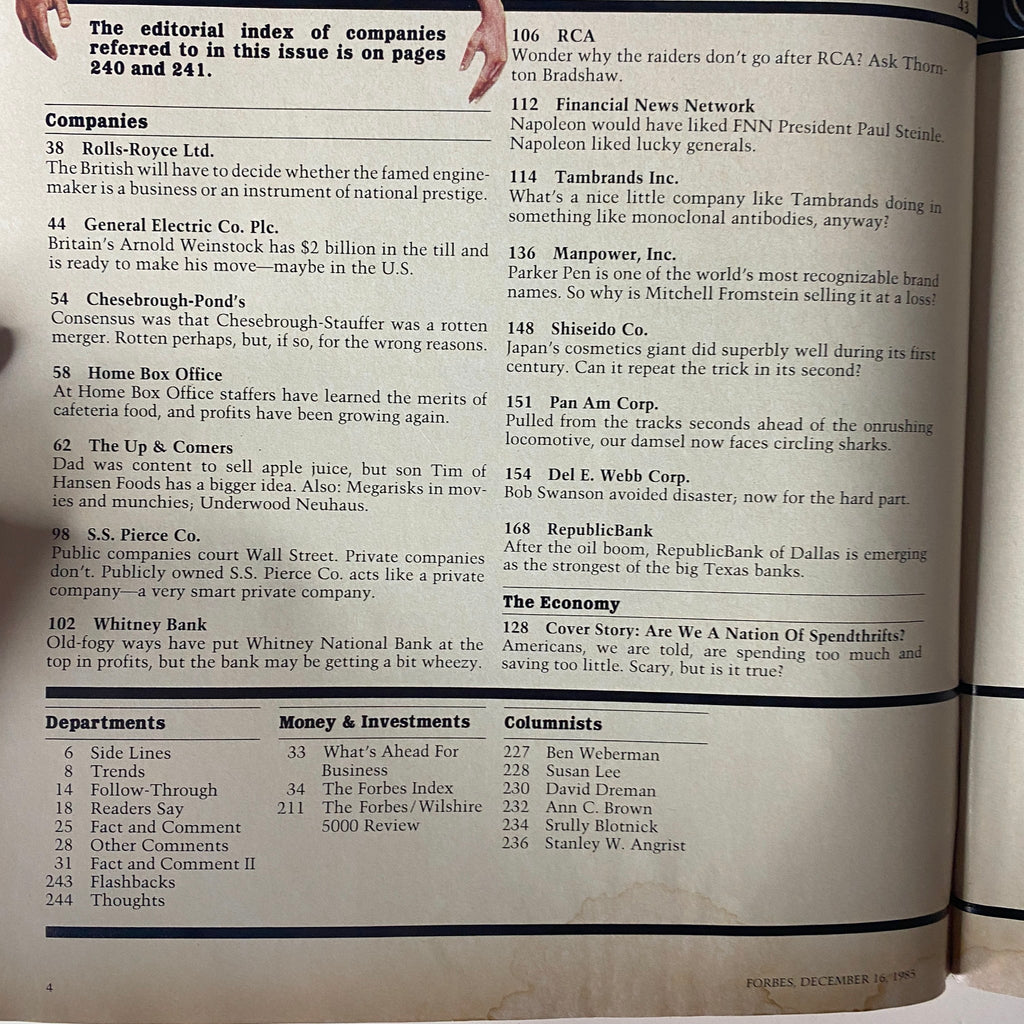 Explore a fascinating piece of history with this Forbes Magazine issue from December 16, 1985, titled Spendthrift America? The Myth Exposed. This vintage magazine serves as a crucial snapshot of a pivotal time in American economic discourse and corporate strategy, capturing the complexities of financial behaviors and industry trends during the late 1980s.