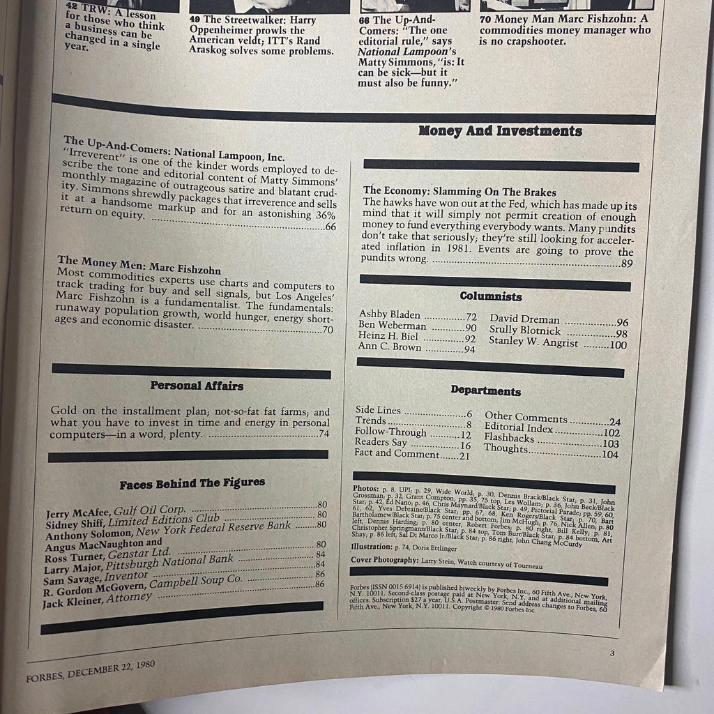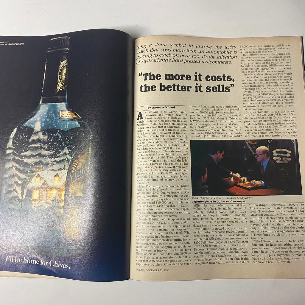 The Forbes December 29, 1980 issue stands out as a significant collectible within the spectrum of vintage magazines, offering a rare glimpse into an era rich with cultural significance and economic transformation. It is ideal for historians, investment enthusiasts, and those passionate about the watch industry.