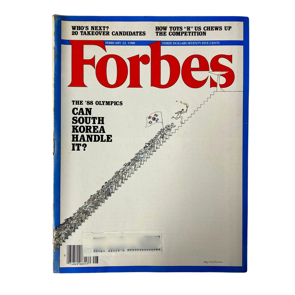 Discover a piece of history with the February 22, 1988 issue of Forbes Magazine, a pivotal vintage magazine exploring the economic landscape in preparation for the 1988 Olympics in South Korea. This collectible magazine features a captivating cover story titled "The World Will Be Watching," where it delves into the implications of hosting the Summer Olympics and how South Korea secured participation from 161 nations, showcasing a unique moment of global convergence.