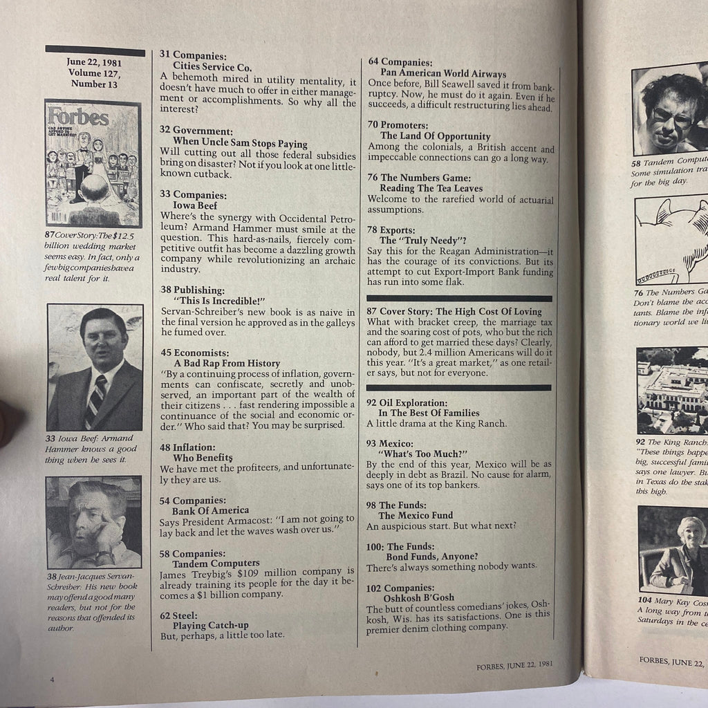 Delve into a nostalgic journey with this captivating issue of Forbes Magazine, dated June 22, 1981. Titled "The High Cost of Living," this vintage magazine offers insights into the economic landscape of the early 1980s, featuring articles that resonate with collectors and history enthusiasts alike.