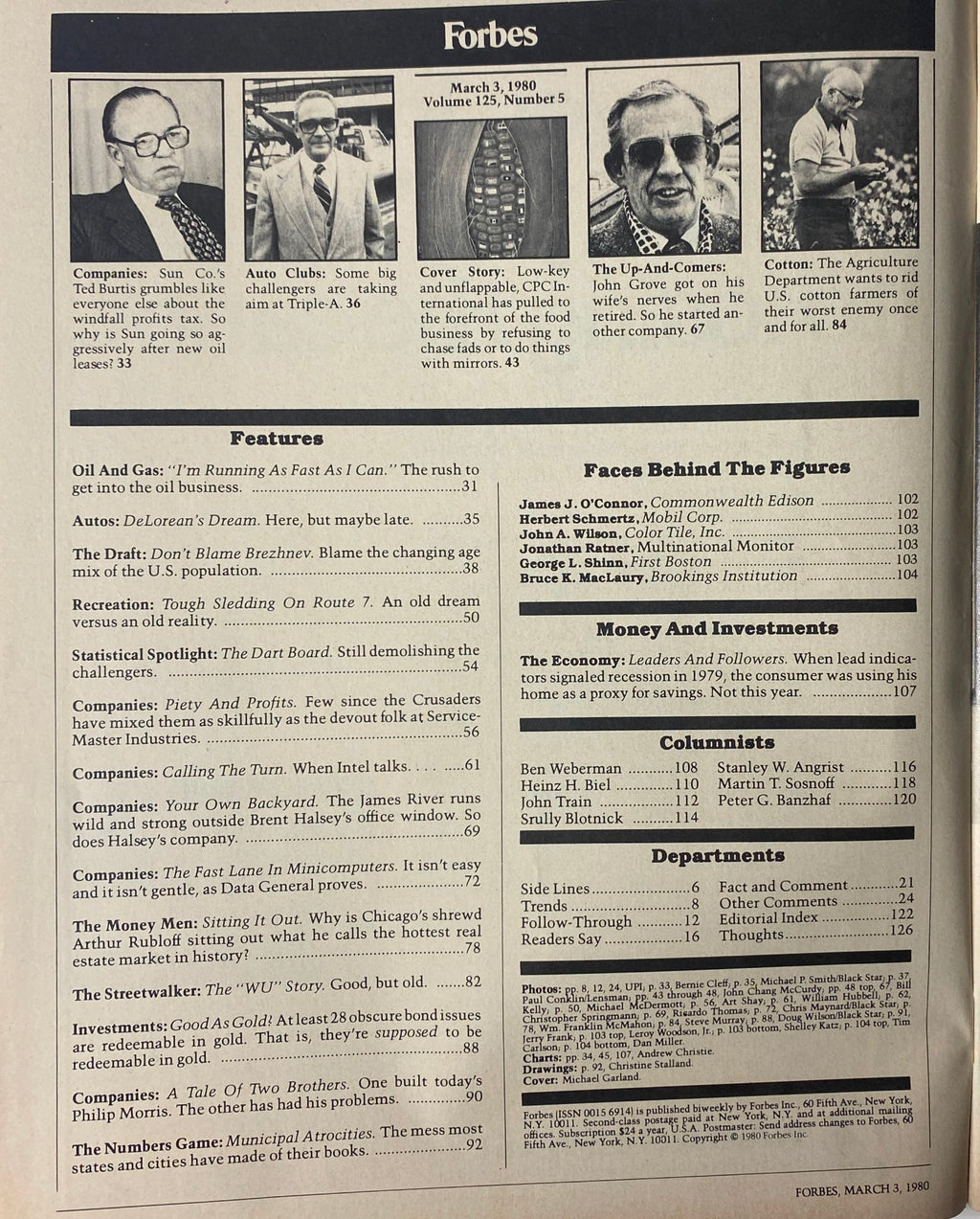 This vintage Forbes Magazine issue from March 3, 1980, offers a fascinating look into the world of global business and industry. Featuring the cover story "Corn Grows a Multinational Giant," this edition dives deep into the success of CPC International—a low-key yet dominating player in the food sector. This article explores how the company has successfully maintained its position in a rapidly changing market by avoiding fads and remaining true to its core business values.
